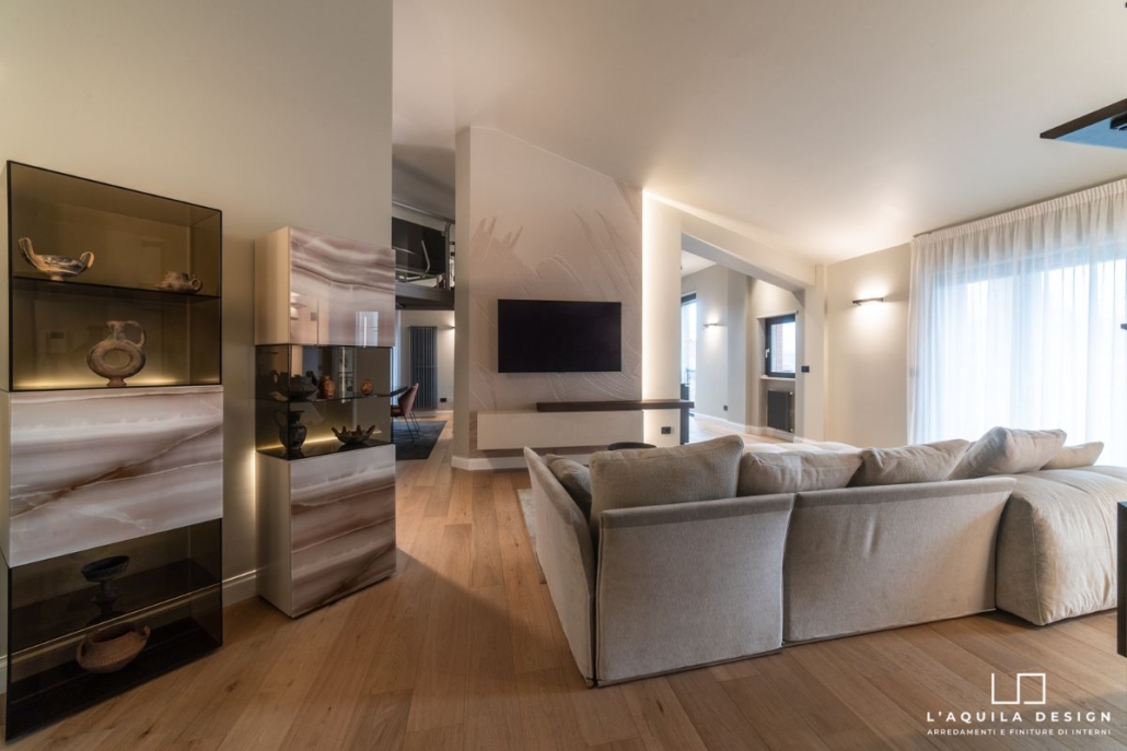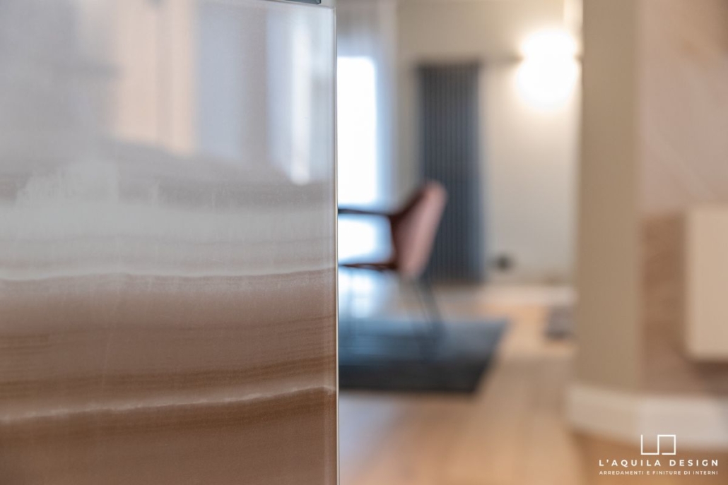 Dopo il nostro primo incontro, consapevole delle possibilità non sfruttate di valorizzare i suoi ambienti grazie a un’attenzione globale non solo ai mobili e agli arredi, ma anche a un progetto illuminotecnico creato ad hoc e a un attento studio di tutti i rivestimenti, ha deciso di fermare i lavori e di proseguire insieme a noi.